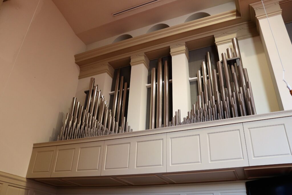 Please enter the sanctuary via the Mitchell Avenue side door and you will find yourself at the back of our sanctuary.